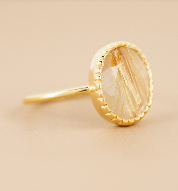 Muja Juma ring met edelsteen, Rutielkwarts. Deze ring is handgemaakt. Het basismateriaal is zilver met een dikke laag 18 krt goud.